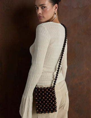 Beaded Cross Body Bag - Brown