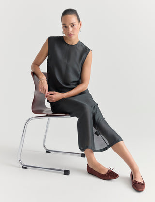A new edition to our flat collection the classic Sophie Flat shoe comes in silk satin and leather finishes. An elevated all year round flat for everyday living.