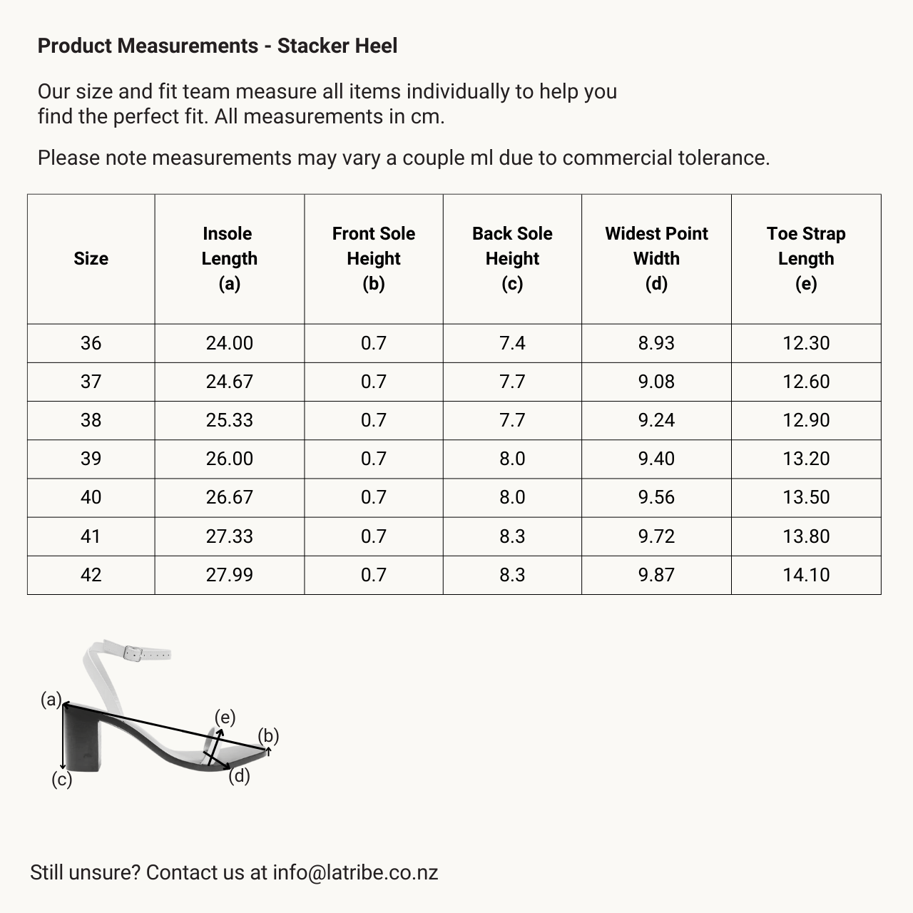 The Stacker Heel is functional, elevated and timeless. Simple, sturdy and comfortable with an adjustable buckle ankle strap. Perfect for your next night out.